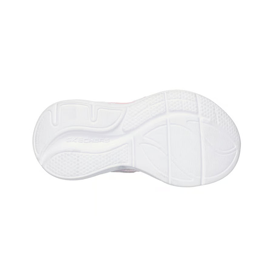 Light up the playground wearing Skechers S-Lights®: Cosmic Glow. This light-up active design features an ombre sparkle mesh and synthetic upper with stretch laces, an adjustable instep strap, and a well-cushioned midsole with step-activated lights.