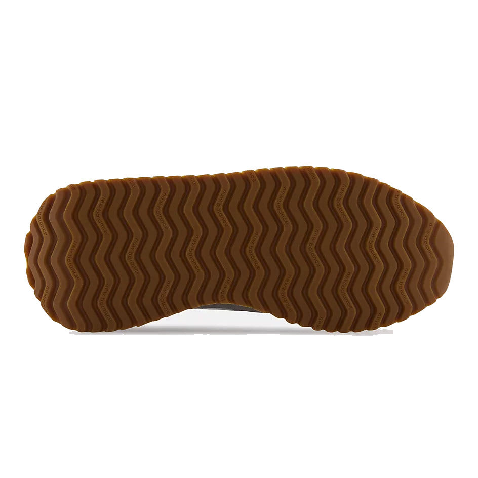 EVA midsole Large scale ripple outsole with text branding Asymmetric rubber tip wrap Exposed foam tongue Angled ‘New Balance’ text at heel tab Oversized N logo