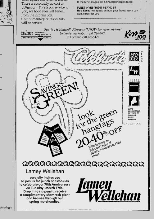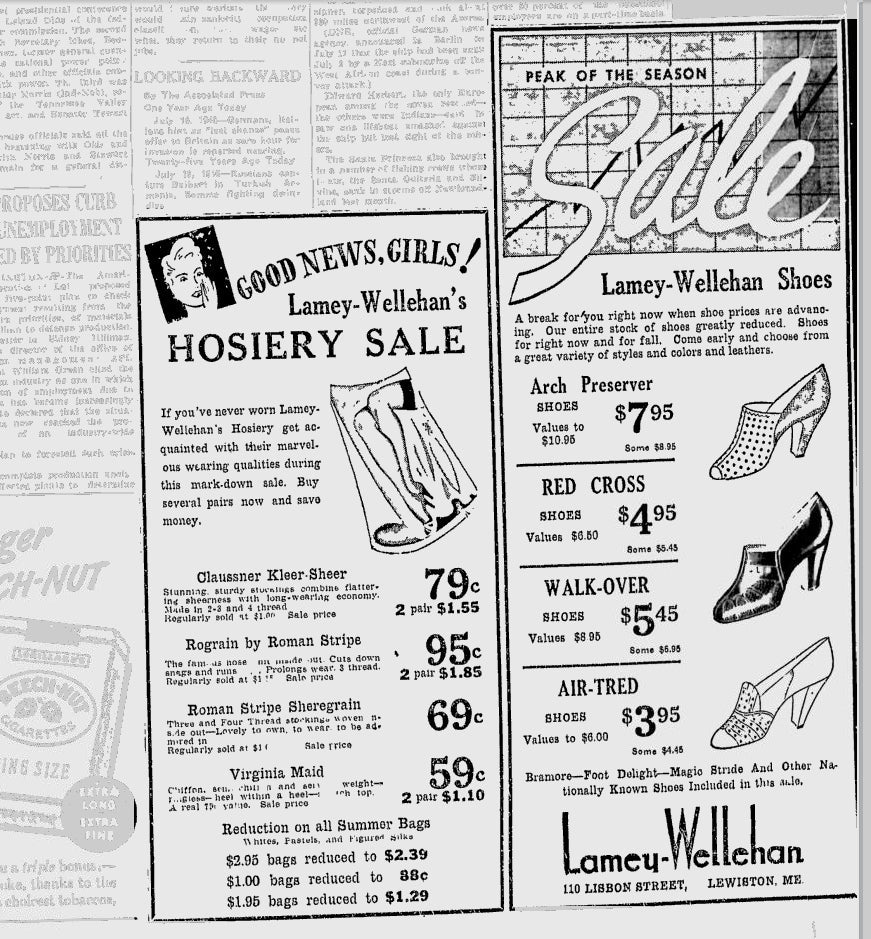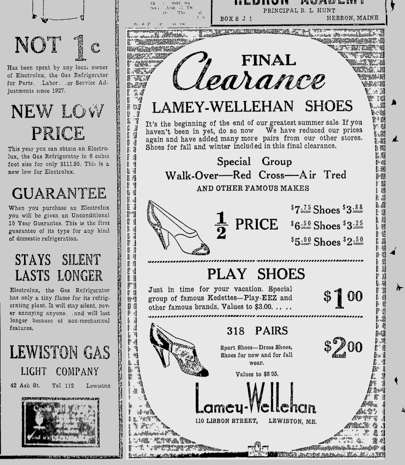 “Welcome to Lamey-Wellehan, Maine’s most modern family shoe store. Charles A. Lamey and Daniel J. Wellehan, the boys from home, invite you to view their stylish collection of footwear. They employ the most modern fitting techniques to ensure your comfort from the daintiest to the most virile foot. It will be the pleasure of the boys from home to serve you for years to come in their store…where you are always a guest before you are a customer.”
