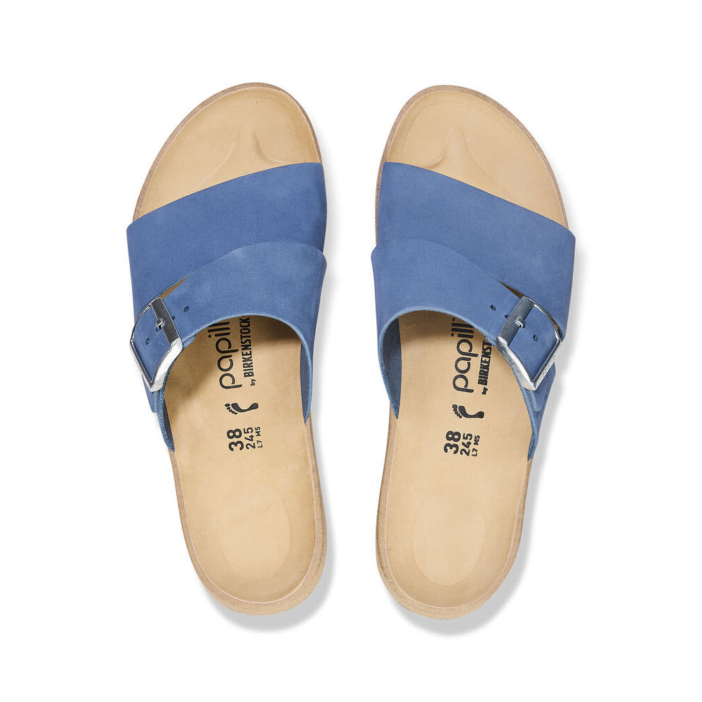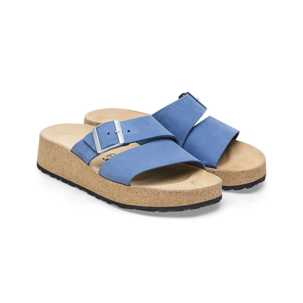 A new wedge from Papillio by BIRKENSTOCK. The Almina's wide nubuck straps provide added stability, giving rich color the space to truly stand out. Its cork PU wedge brings classic BIRKENSTOCK style into the mix, along with a contoured footbed for the ultimate in support.