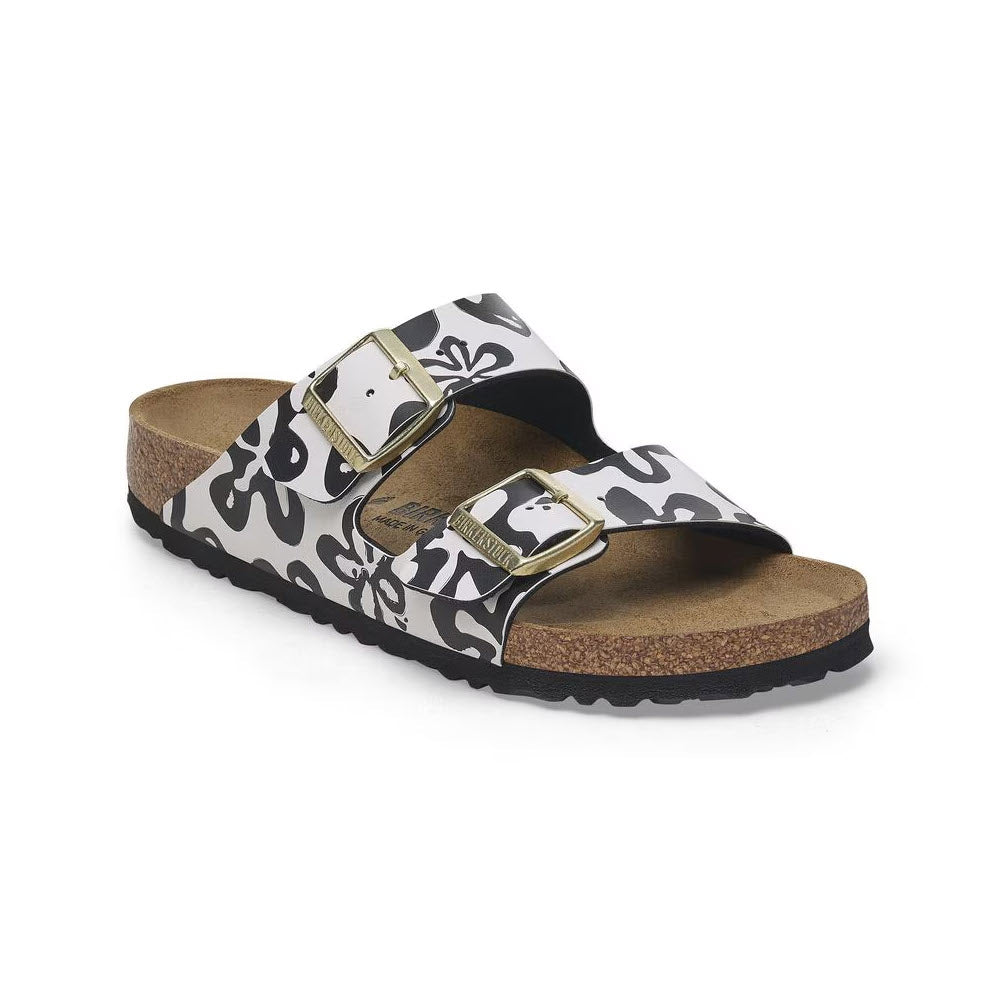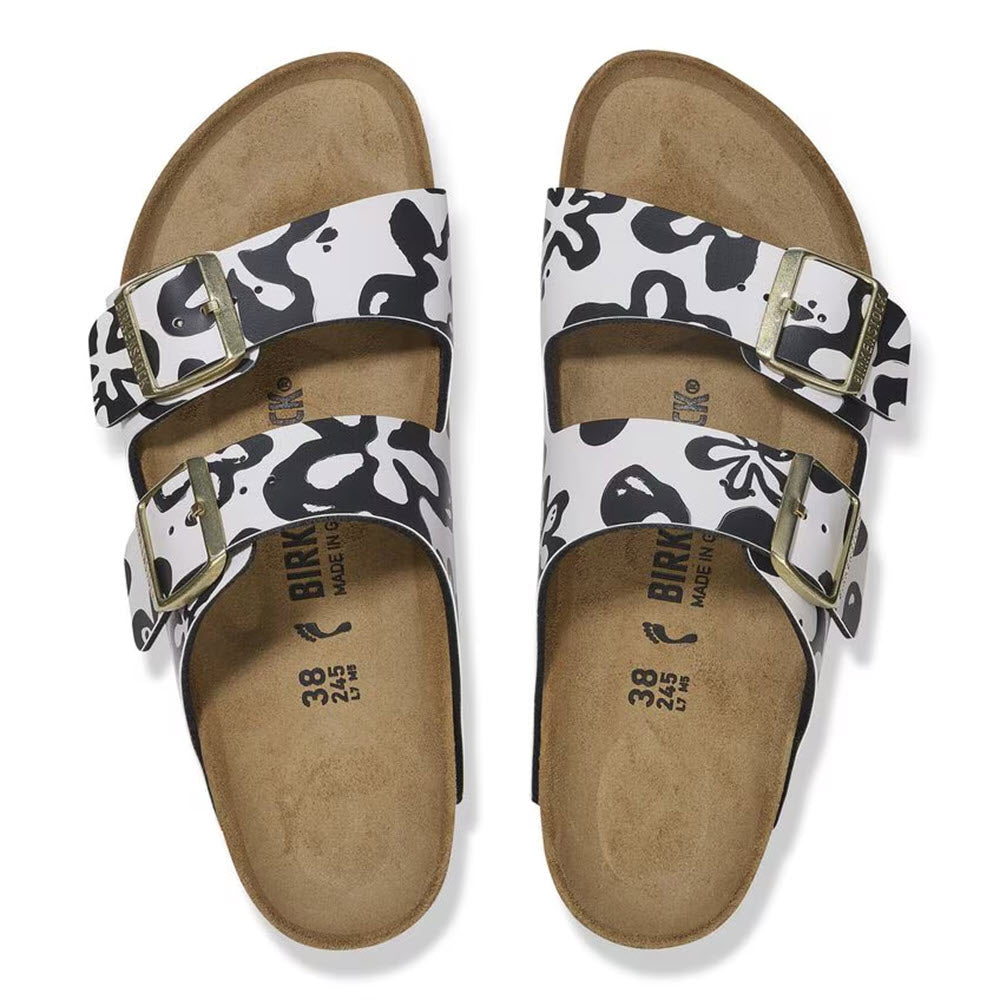 The BIRKENSTOCK Arizona is a genuine classic that has been delighting both men and women for decades. This simple sandal with two straps stands for timeless design and has long held cult status thanks to its comfort factor. This version boasts a special design with a floral print. The upper is made from the skin-friendly, hard-wearing synthetic material Birko-Flor®.