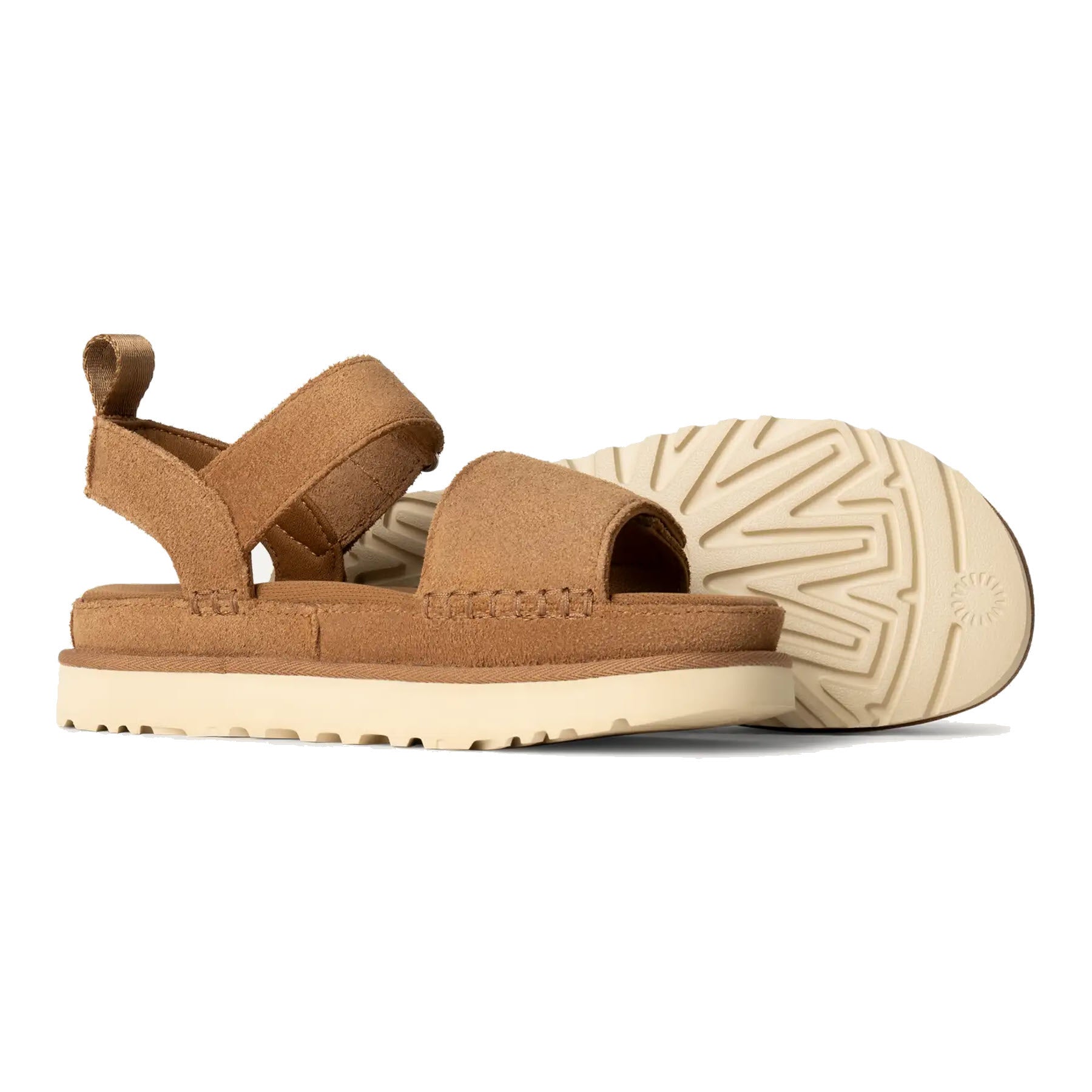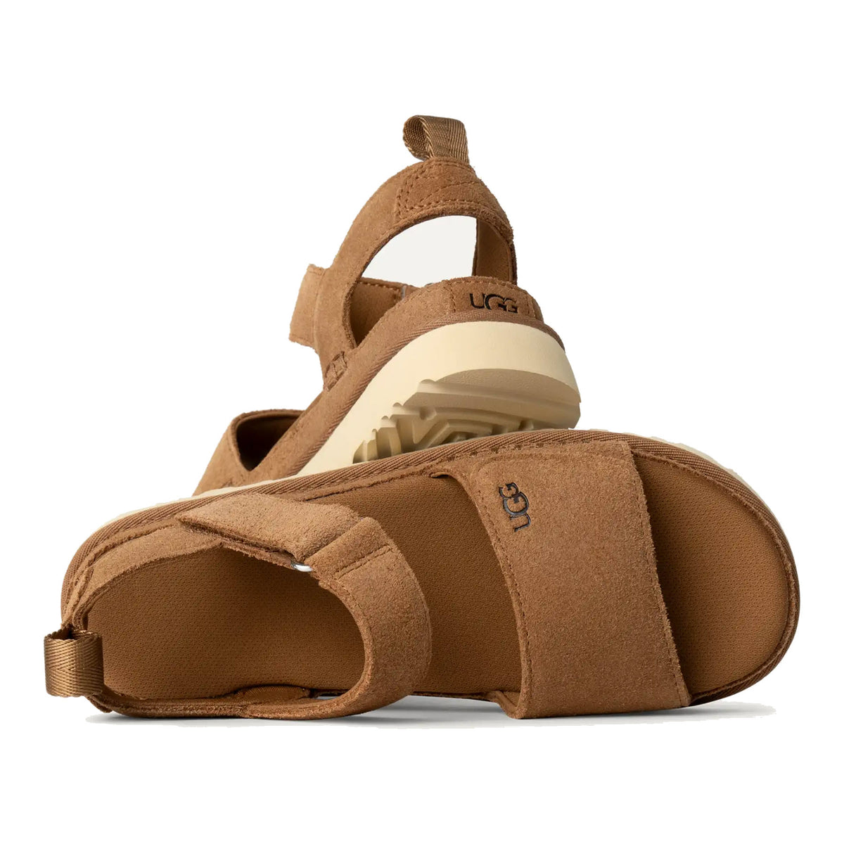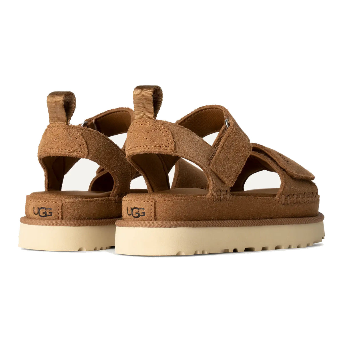 The Ugg Goldenstar is the sandal that feels like the Classic UGG® Boot. Crafted from velvety suede and made with an ultra-cush, but supportive foam footbed and a lightweight outsole for all-day wear. Two sets of adjustable straps provide a fine-tuned fit for comfortable days on the go. Go ahead, join the Goldenstar fan club. It features a suede upper and adjustable ankle straps, adjustable vamp straps, and a contoured EVA footbed.