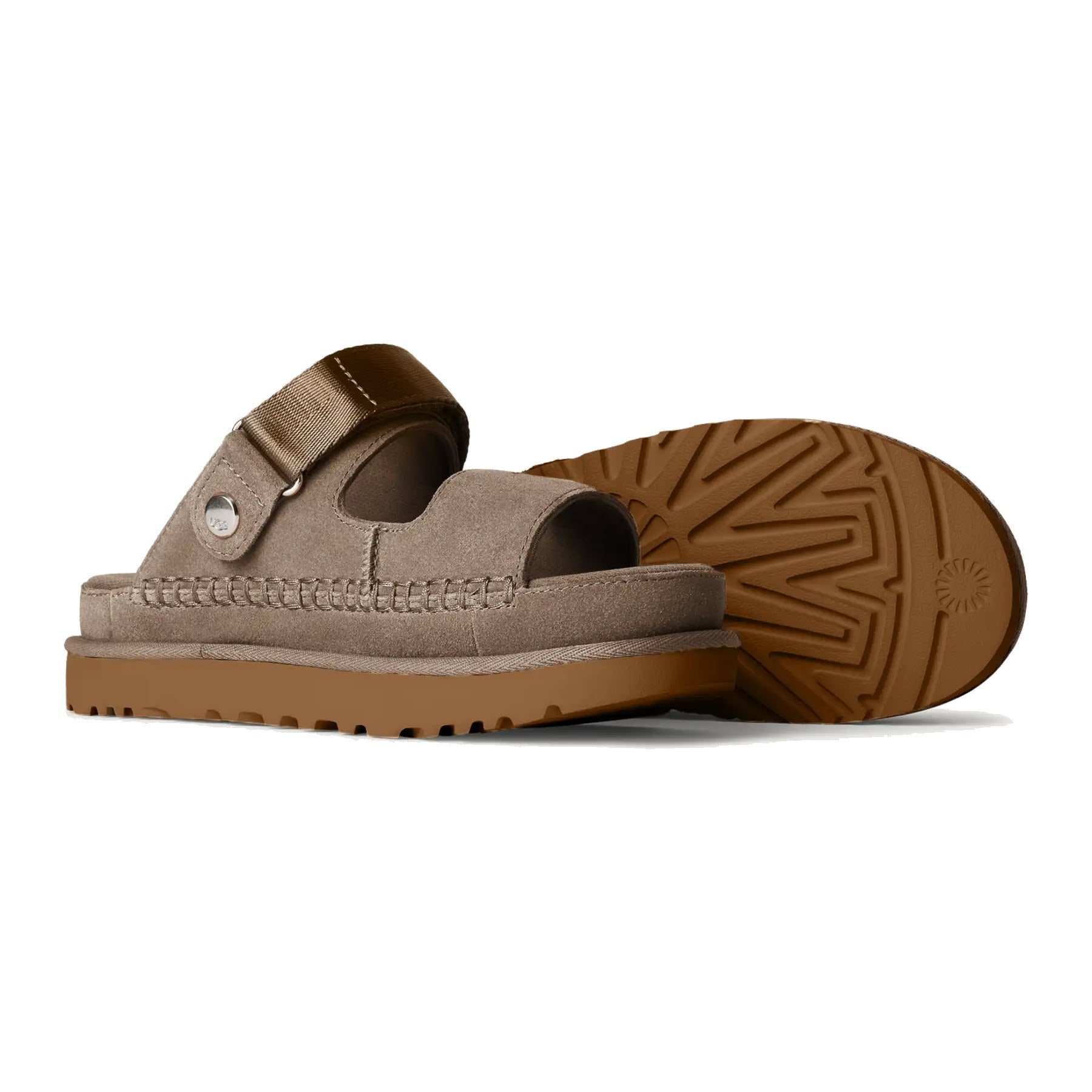 The Goldenstar Glide brings convertible comfort to all of your sunny-day excursions. It's designed with an adjustable heel strap that can flip to the front for slide-like access when you're on the go. The contoured footbed is lined with soft, recycled material infused with an anti-odor treatment to keep you feeling fresh. From the rich suede upper to the renewable sugarcane EVA sole, the Goldenstar Glide is headed straight for your 'favorites' line-up. It features a suede upper and a contoured EVA footbed for comfort.