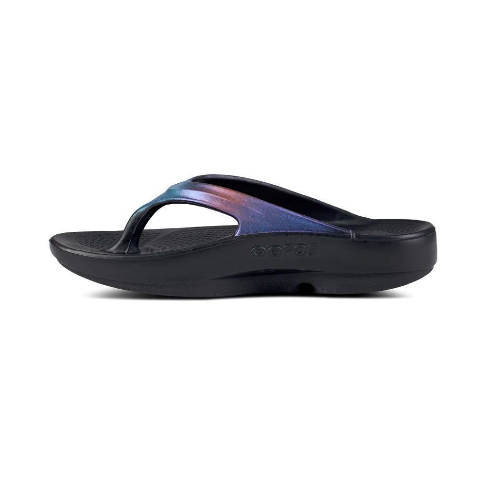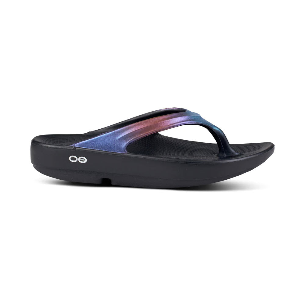 The Oofos Oolala Luxe sandal features OOfoam® Impact Absorption Technology to reduce the stress on your feet and joints. This flip-flop-styled sandal promotes a more natural foot motion. It features a minimalist lightweight construction and enables more natural motion. The sandal is moisture and bacteria-resistant.