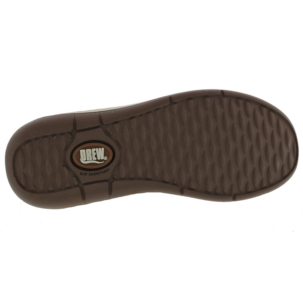 The Drew womens Tempo shoe is an easy-on, easy-off with adjustable closure. Two removable insoles provide a customized fit and a single hook and loop strap offers quick and easy adjustability. The WalkRight Insole has a contoured arch and stabilizing heel cradle. An extended medial heel stabilizer reduces heel slippage, providing superior support in this Drew women's shoe. The orthotic-friendly Drew Tempo has a soft, foam-padded collar for added comfort that lasts throughout the day.
