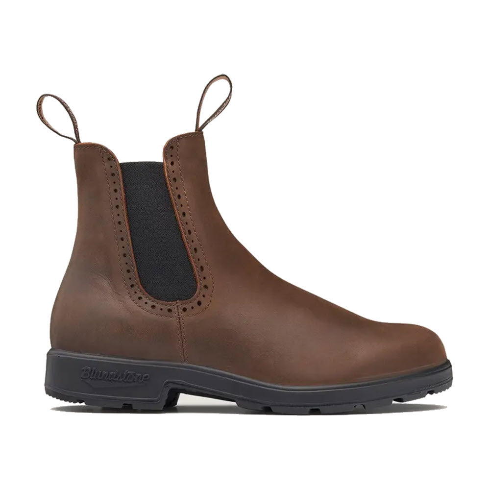 The Blundstone 2151 boot combines the sleek design of a high top with rich, antique brown leather upper. It features a black elastic side and classic brogue detailing. This rugged boot is leather lined and has a durable TPU outsole. It features the Blundstone SPS Max Comfort system for outstanding shock absorption.