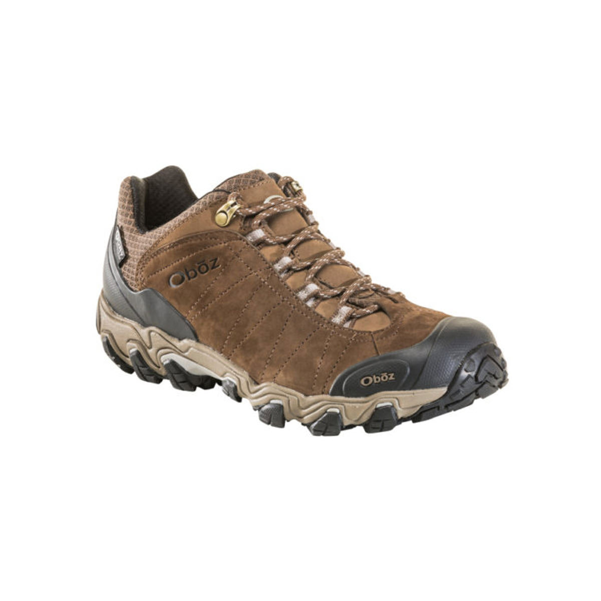 The Oboz Bridger Low waterproof hiker features an all-leather upper with BDry waterproof membrane. The shoe also features extra comfortable collar, a lightweight TPU forefoot plate, metal hardware and a lightweight, aggressive outsole. It also includes a nylon stability shank, bruise-preventing TPU flex chassis, BFit arch supporting EVA insole and sticky outsole with 4mm directional lugs.