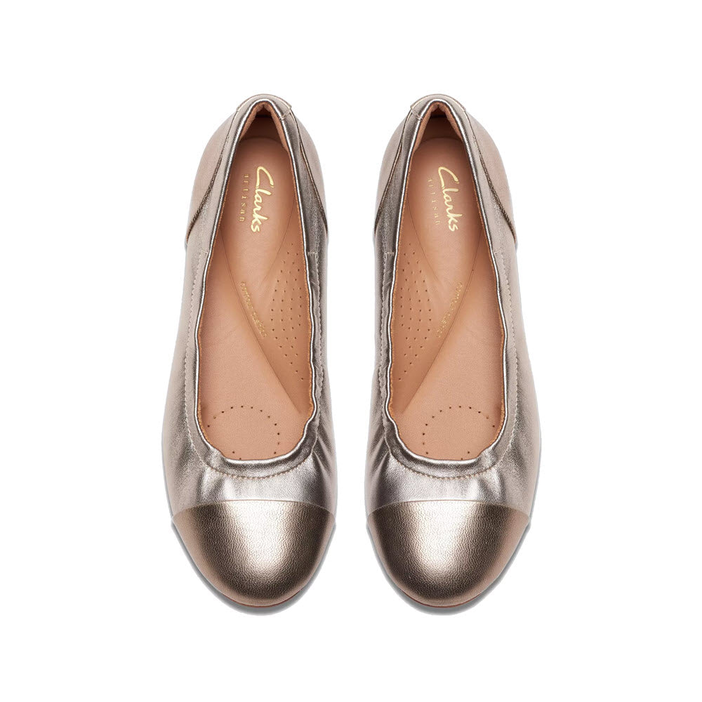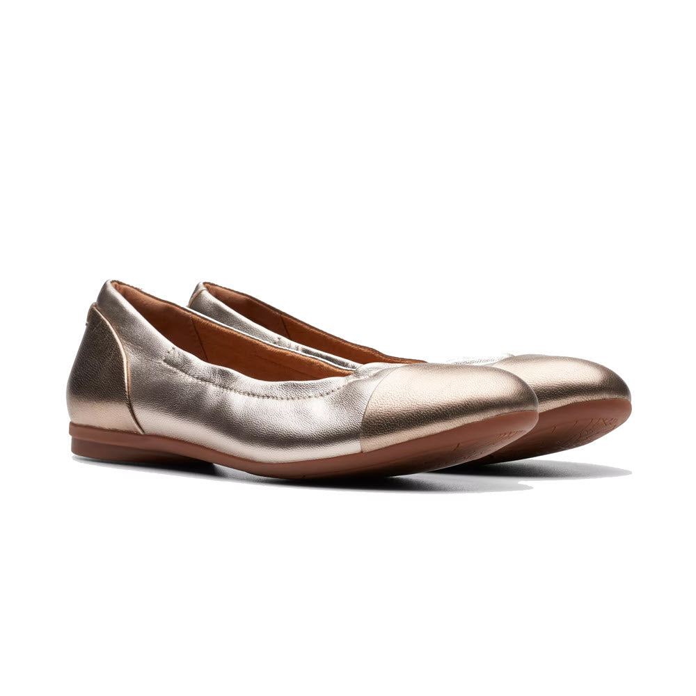 Rena Jazz, a soft leather profile with a beautiful metallic finish. Days at the office and trips to the high street are spent in complete comfort thanks to this pair’s soft elasticated trims and moulded Contour Cushion footbed