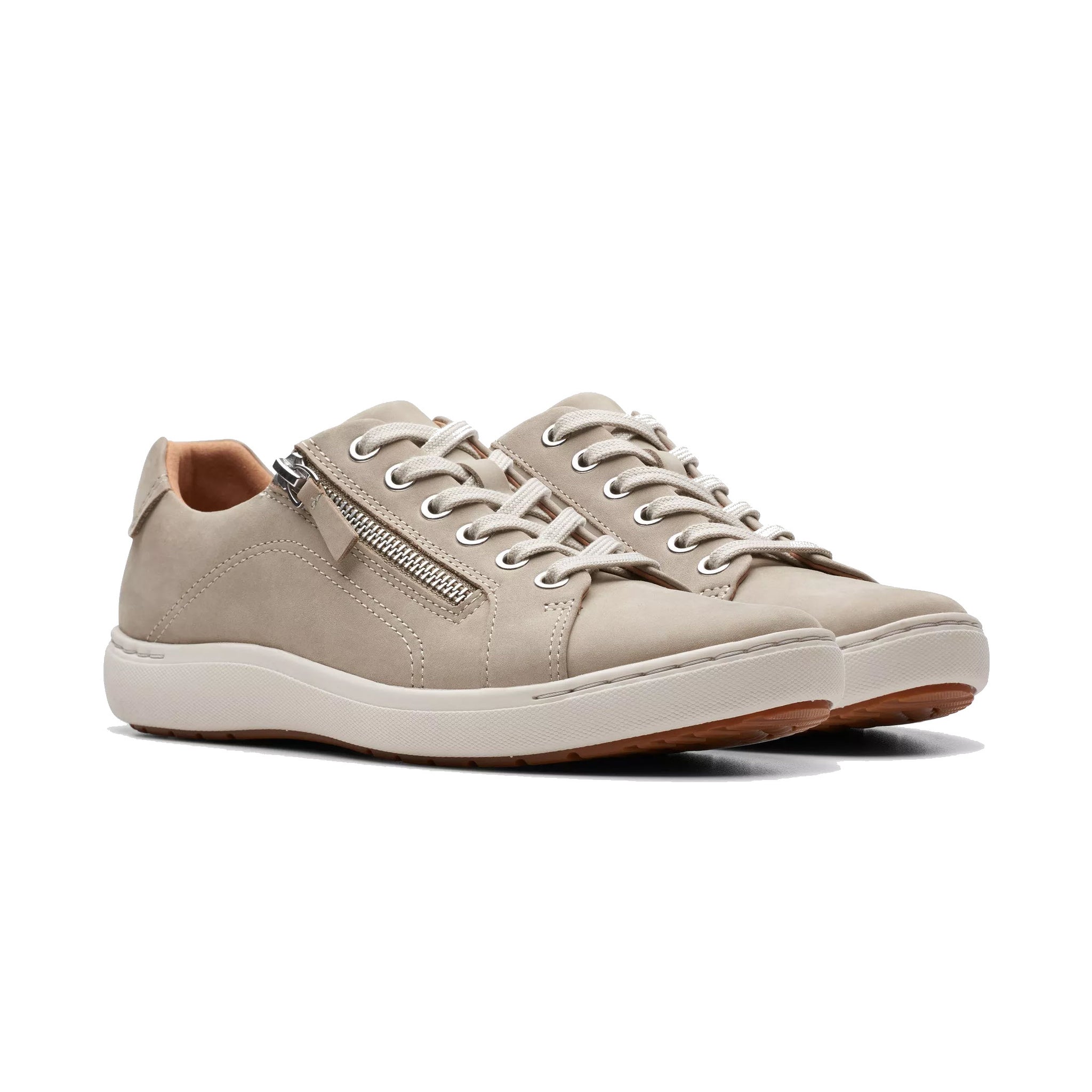 Stay light on your feet with the Nalle Lace. Supple white leather uppers bring sports-inspired style to Clarks' iconic craftmanship, resulting in a contemporary sneaker that's ideal for a modern life. Our supportive Contour Cushion footbed combines with a high-grip rubber sole for underfoot comfort on those busy days.