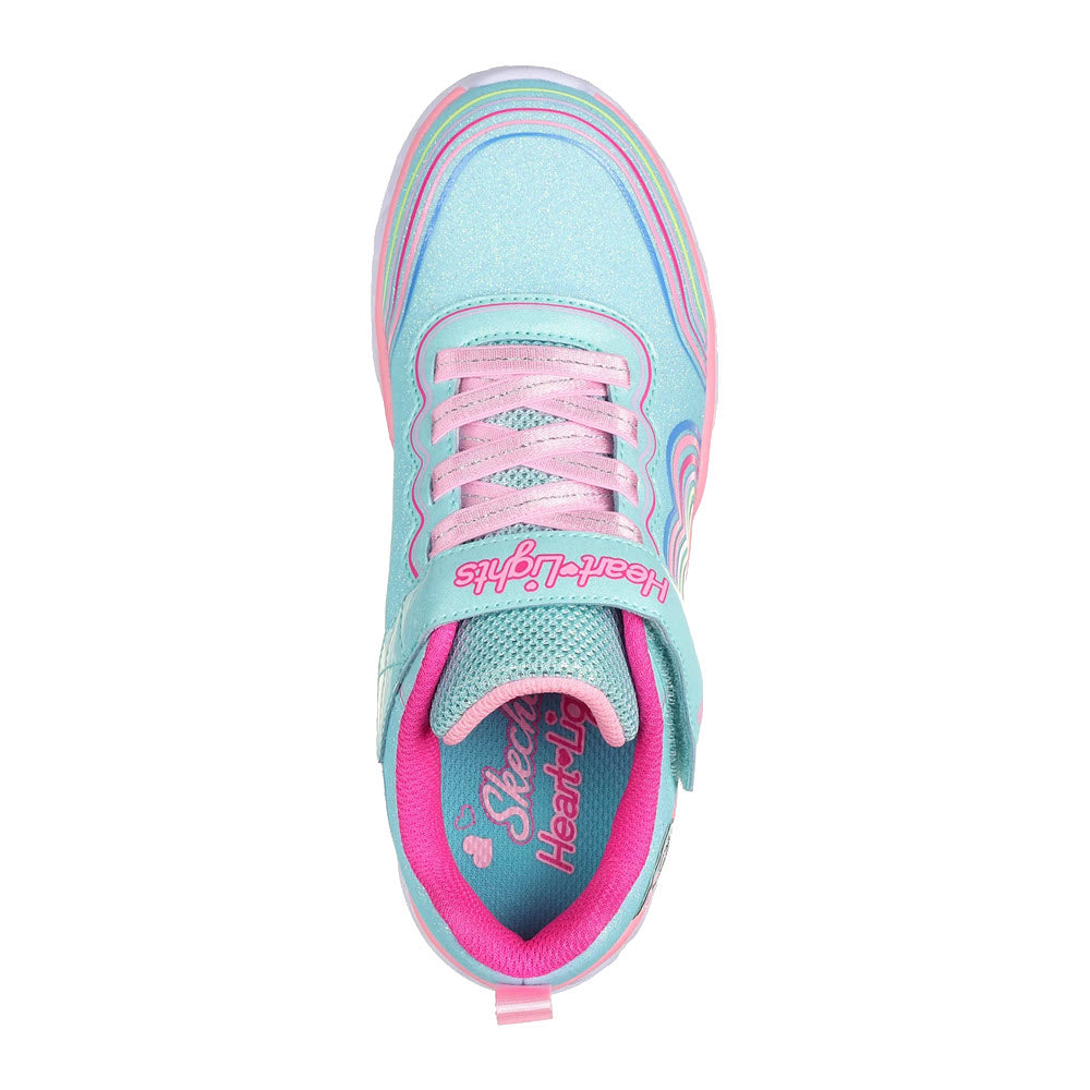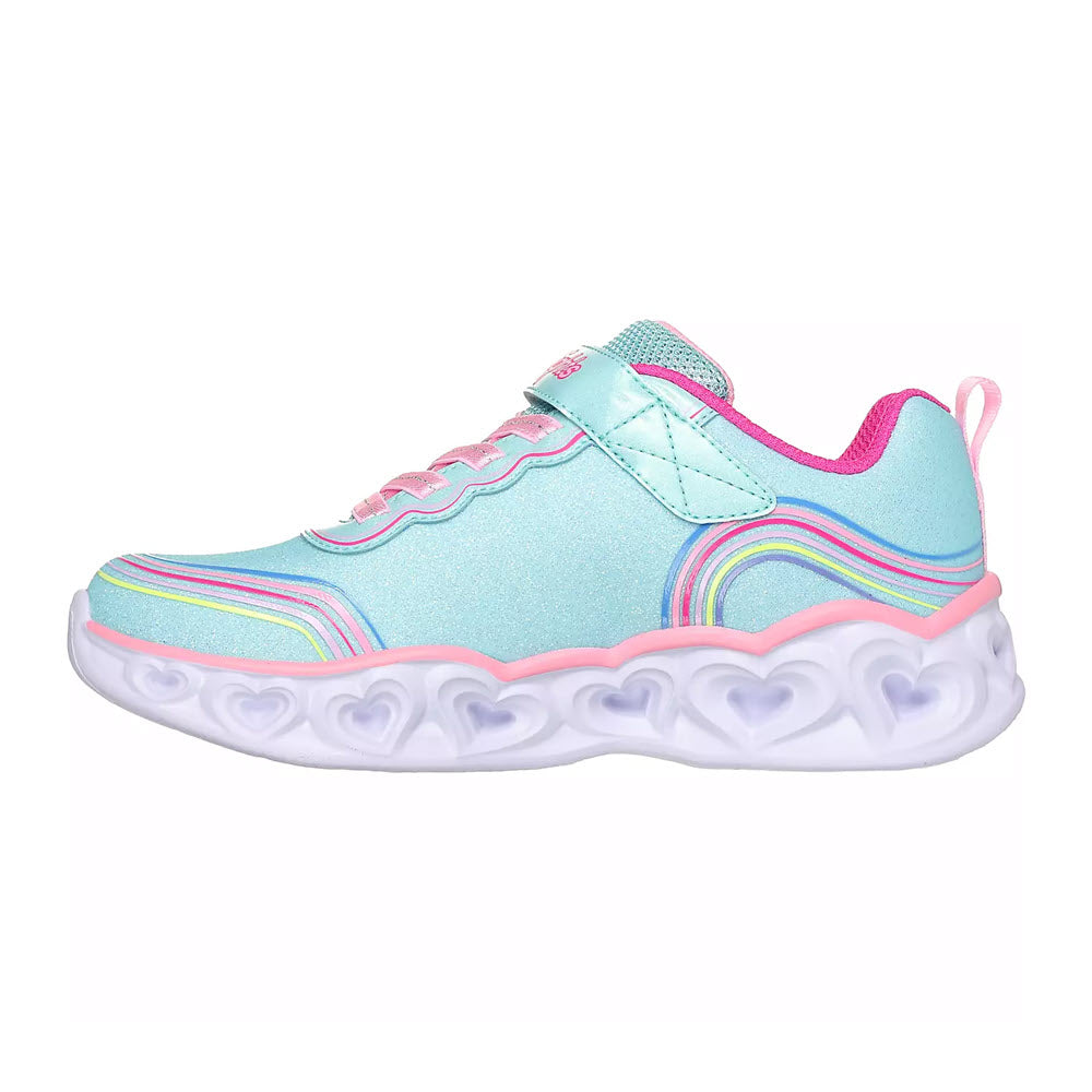Add a cute touch to your outfit with the SKECHERS Girls' 4-7 Heart Light Retro Hearts Shoes. These shoes have a 3D rainbow heart print and a light-up design that offer an eye-catching appearance, and they have comfort insoles to make sure your feet stay comfortable all day long. The sparkle mesh uppers deliver breathability, and the stretch-lace closure makes it easy for you to slip the shoes on and off easily.