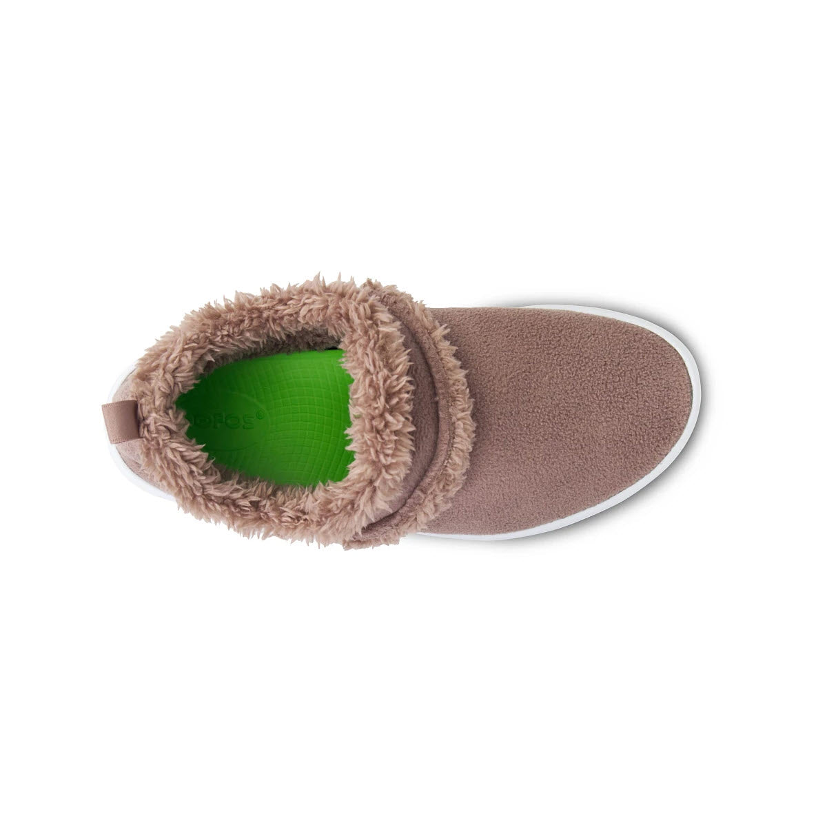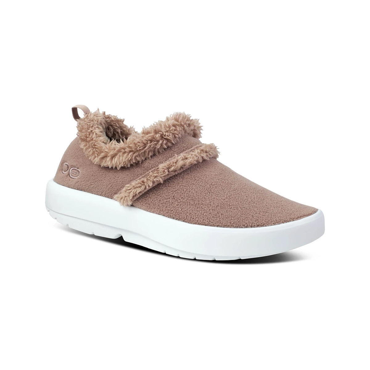 Women's OOFOS® OOCOOZIE LOW :: So COMFY! Your new Women's OOFOS OOcoozie Low lounge shoes feature patented OOfoam technology, which absorbs 37% more impact than ordinary sneakers and helps reduce stress on those hardworking joints. Plus, the cozy sherpa upper is vegan, recyclable AND machine washable. Delicately cradling your arch and promoting a more natural stride, your OOcoozie Low's are the perfect way to pamper your feet on those long rainy days spent around the house or when you're out and about running errands.