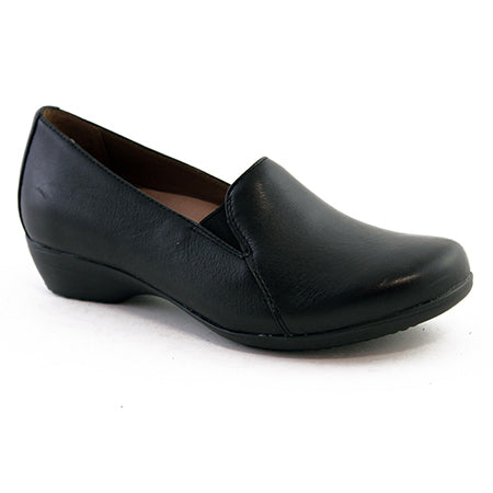The Dansko Farah women's slip-on lets you strut in comfort and style. The upper is constructed of genuine leather and features a combination of leather and textile lining throughout for added comfort. The Farah has an easy slip-on design with round-toe styling and features an elasticized-gore that provides an adjustable and formfitting wear. The removable EVA footbed offers a personalized fit while the shank within the rubber outsole promotes stability.