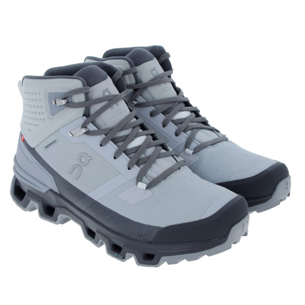 The On Cloudrock Waterproof hiker is designed for exploration in all kinds of weather. The Swiss-engineered FlexLock system allows laces to be tied traditionally or with a single pull, ensuring the perfect fit every time, while the tongue straps secure laces. Outside, the 360° rubberized mudguard is tough but light and flexible, providing the ideal blend of speed and shield. This boot has a durable membrane is wind- and waterproof. It features the Speedboard® midsole that provides propulsion and stability, and the On Running Cloudtec® elements work to absorb the impact of your step.
