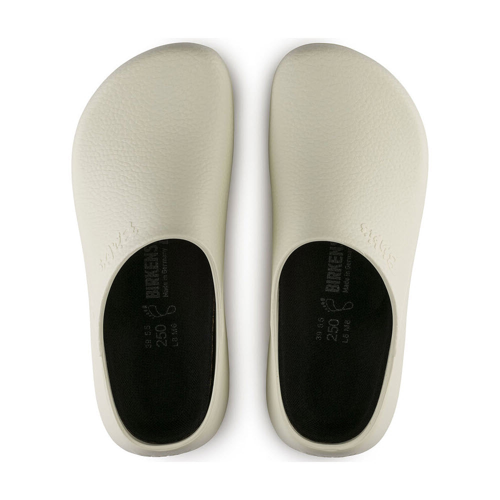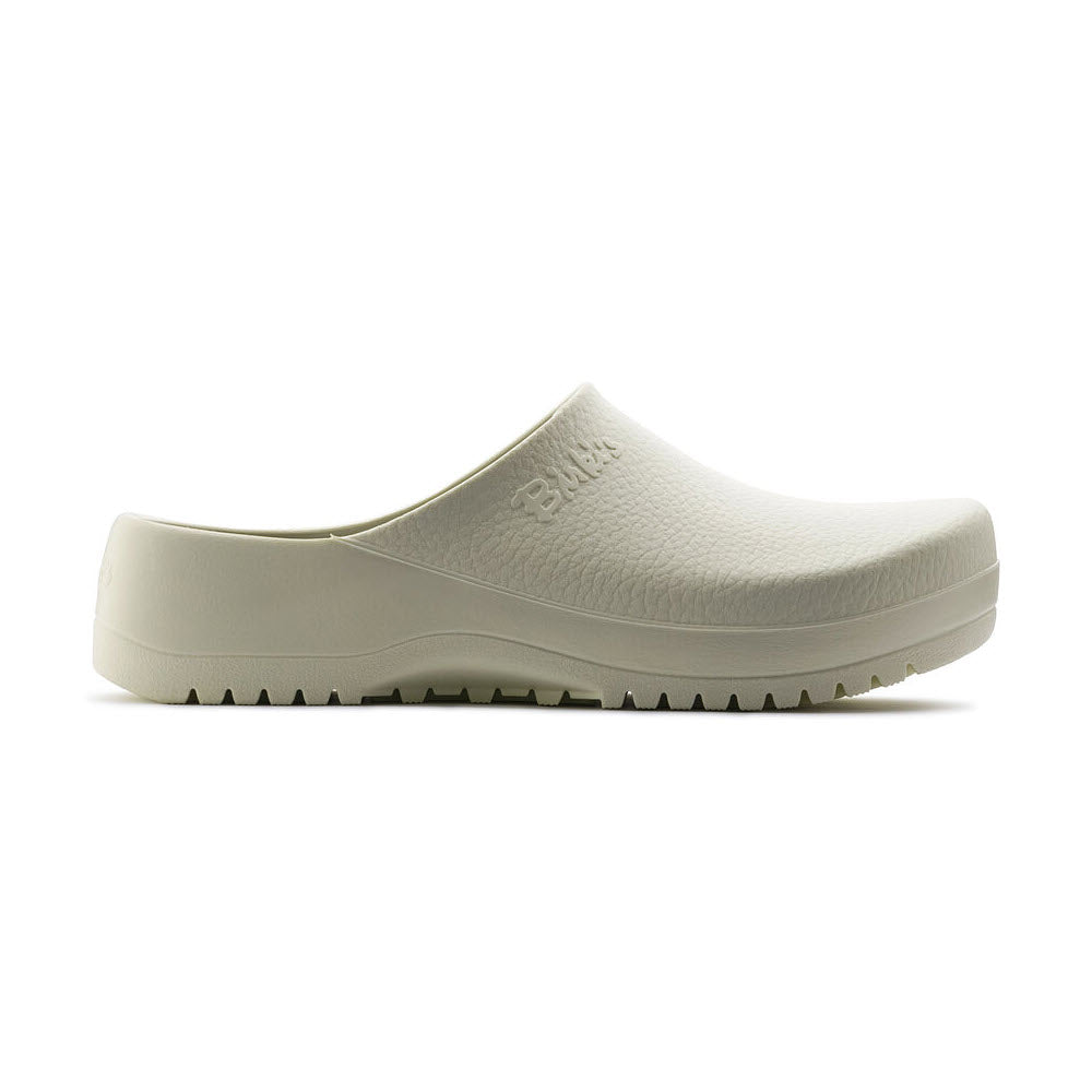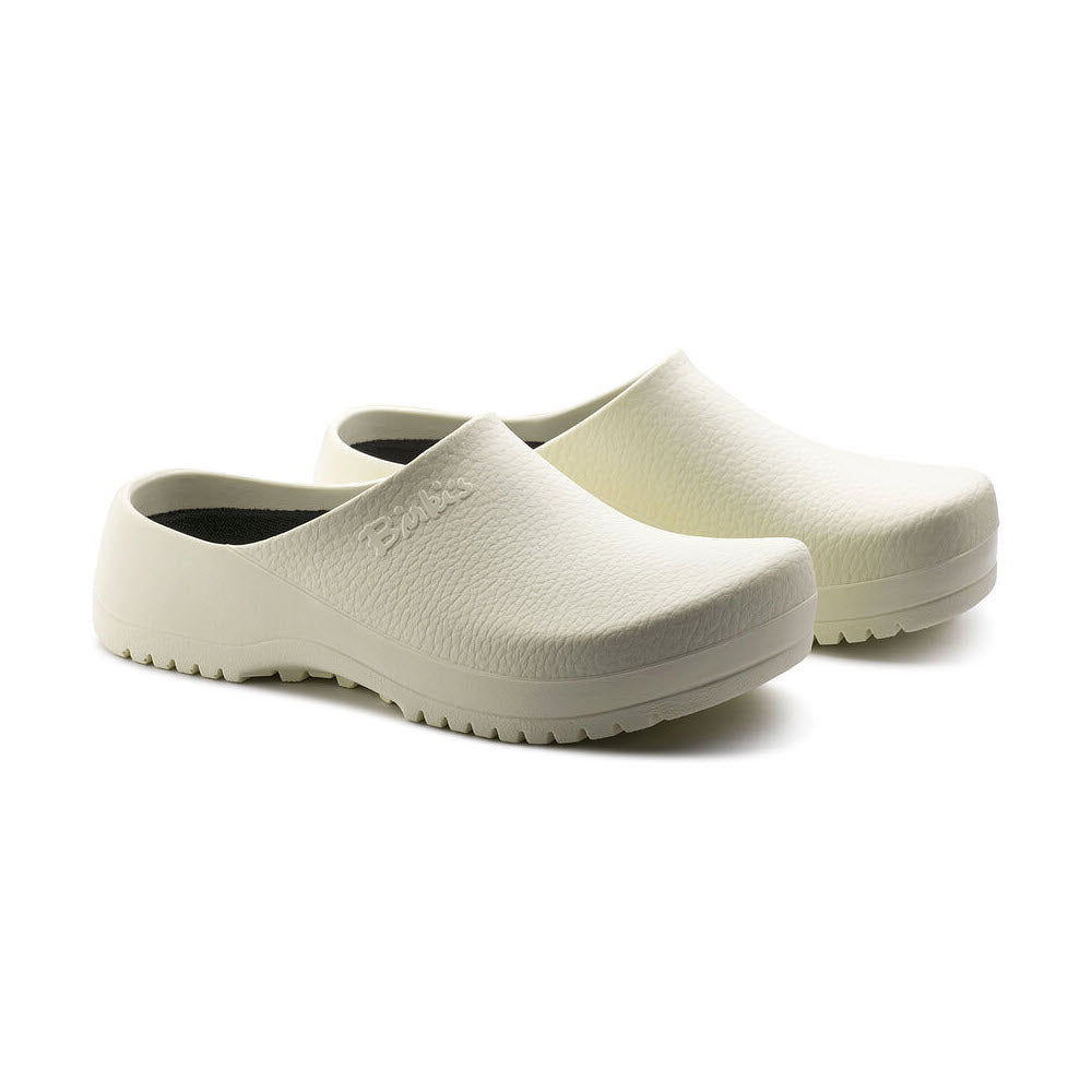 Super Birki is highly versatile for use in all sorts of occupational and private settings. This compact shoe made from water-resistant and dirt-repellent polyurethane is also oil- and grease-resistant. Its resilience and its hygiene properties make it ideal for kitchens, medical environments, and the food industry – while it can equally serve as a practical garden clog. The anatomically shaped cork-latex footbed is lined with a moisture-wicking fabric. It can be removed for easy cleaning and is washable.