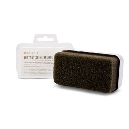 Stow this instant shine product in your desk drawer for shoe shines in a snap. Easy to use sponge cleans and shines all leathers with no mess and no buffing. May be used for shoes, handbags, briefcases, luggage and even vehicles. Only for smooth finishes.  It comes in convenient re-sealable packaging.