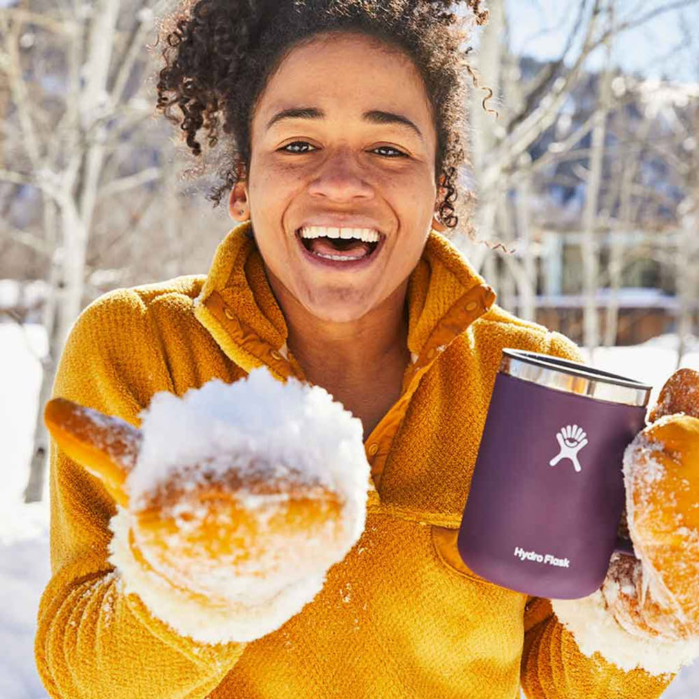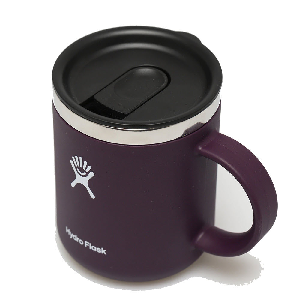 Hydroflask 12 ounce mug keeps drinks temperature stable for hours. Closeable lid to keep splashes at bay and Soft touch finish for a cozy feel in your hands.