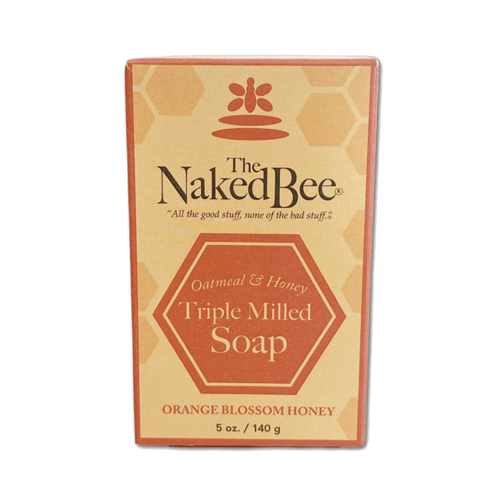 Naked Bee - All the good stuff -- Palm and Coconut Oils produce a rich gentle lather. Saponified beeswax helps make the bar harder and longer lasting. Honey is antibacterial - it heals and protects against skin moisture loss. Rolled Oats for gentle exfoliation. Guar gum, a natural plant substance that produces a creamy lather.None of the bad stuff -- Paraben-free. No propylene glycol. No dyes or pigments. No EDTA. Phthalate-free fragrance. No animal testing. A gentle cleansing bar, 2.75 long-lasting ounces, in a gentle Orange Blossom and Honey scent. Comes in a 2.25 inch square box.