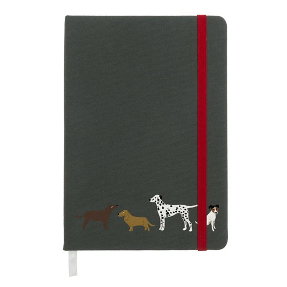 The Sophie Allport Fabric Notebook Fetch is a perfect handy notebook that features four cute dogs on a dark seaweed colour background. The B6 Sized notebook includes 160 pages of ruled paper, a ribbon page marker and a contrasting red elastic strap. It measures 17.5cm x 12.5cm x 1.5cm.
