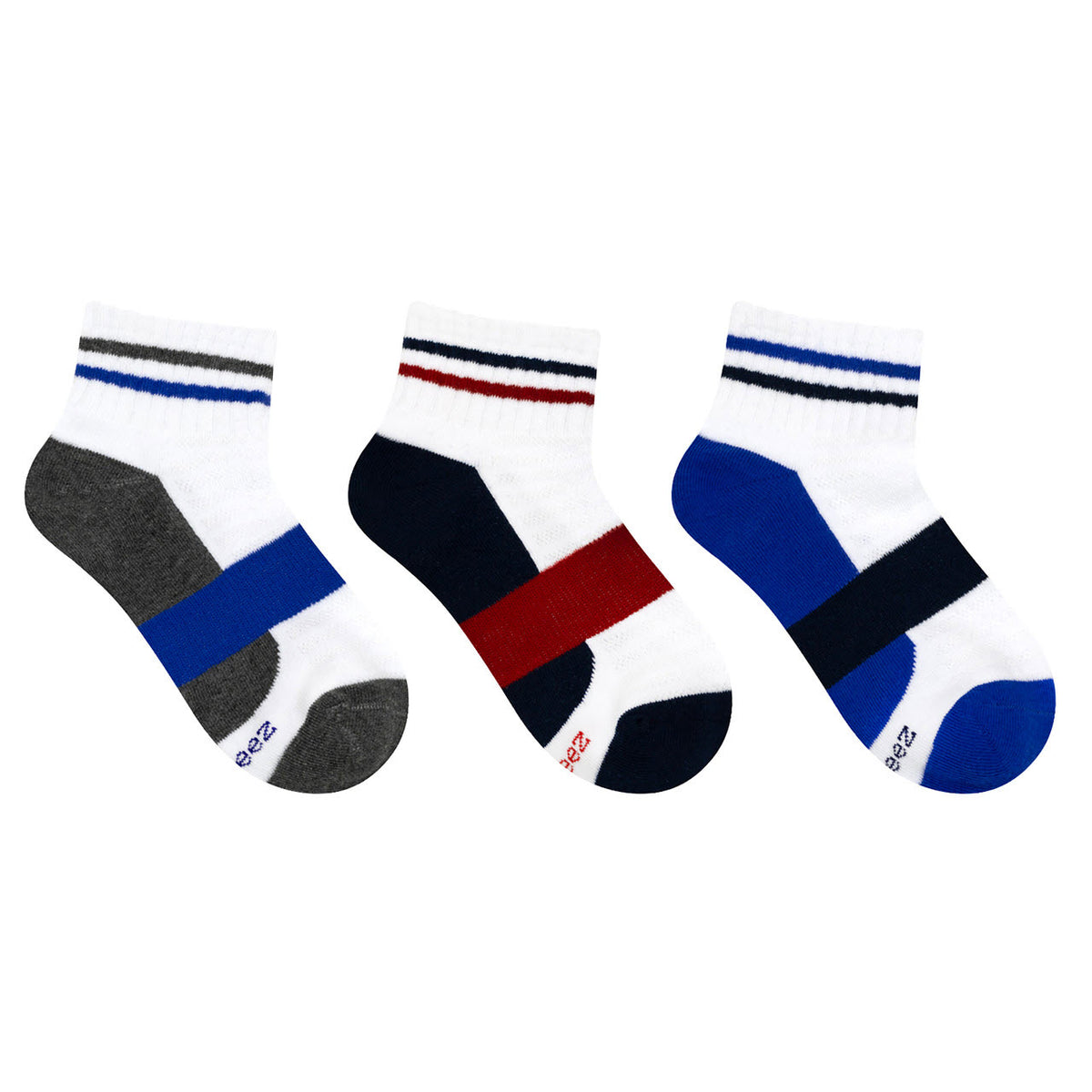 The Athletic 3-Pack Quarter Socks for toddlers and kids offer simple, everyday comfort with a classic design. Made in basic white with stripe and patch details, these socks provide a snug fit and are perfect for all-day wear.