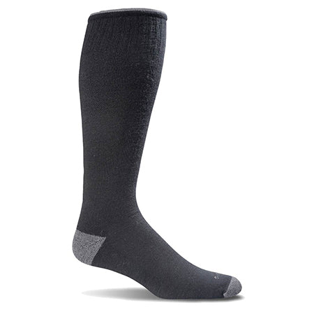The Sockwell Elevation Men's 20-30MMHG compression sock is made from Cashmerino wool that regulates temperature and manages moisture. It features an ultra-light cushion sole and arch support. Men's size M/L fits about men's shoe size 7-10 and men's size L/XL is about 10.5-13.