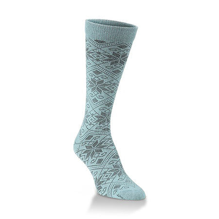 The Knitpickin Snowfall women's sock is a lightweight sock that features a pattern of snowflake design. This sock is made in USA and comprises 33% Cotton, 33% Modal, 33% Nylon and 1% Lycra Spandex.