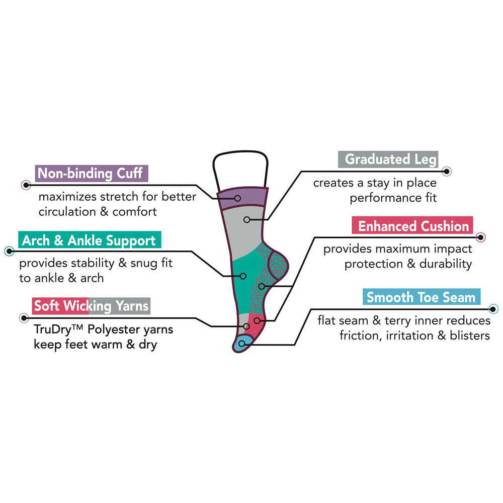 Smooth, reinforced toe maintains optimal comfort & durability and Target ankle support provides support without restricting motion.